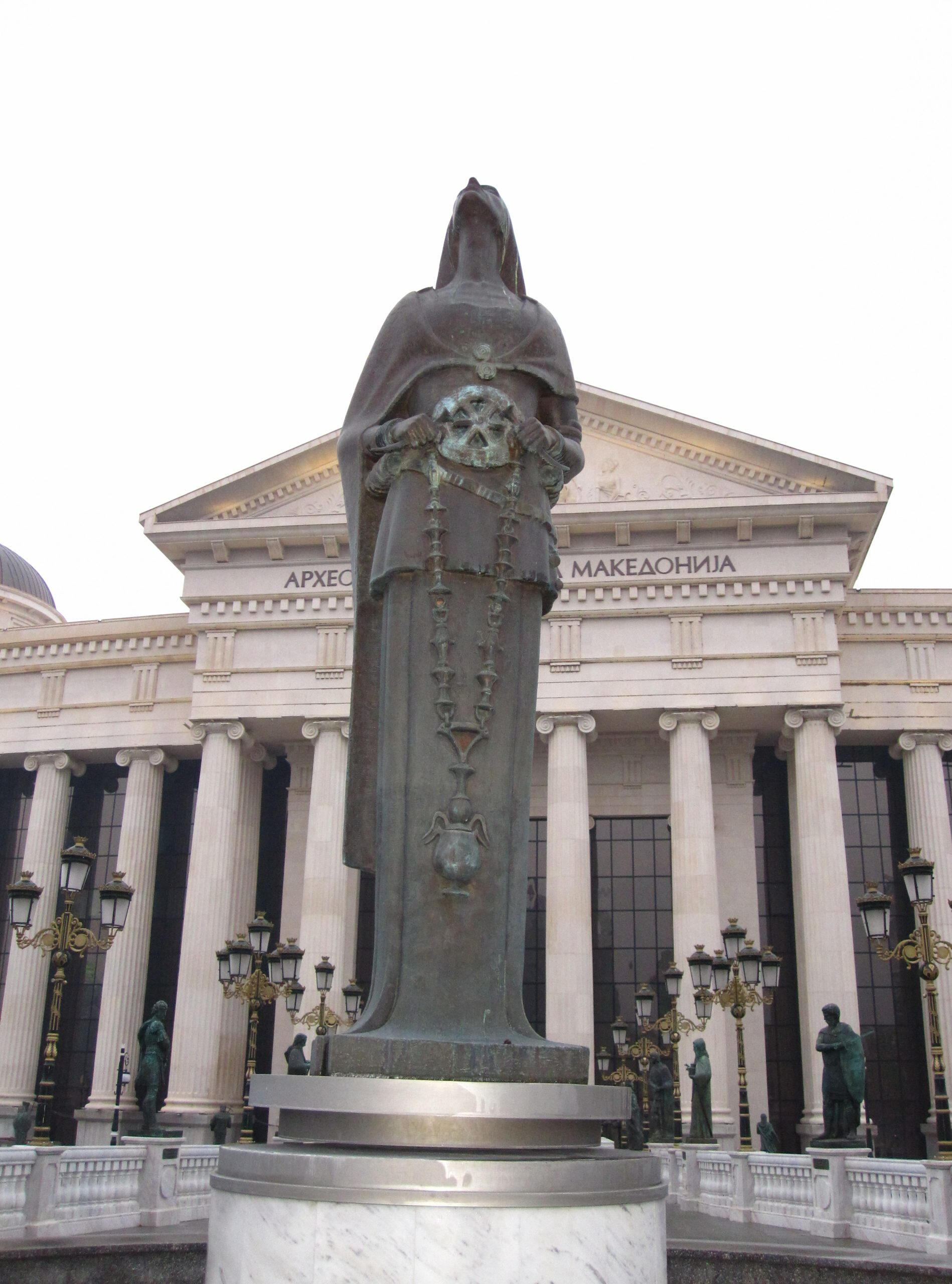 I didn't know who she was.... I had never heard of any female in our history that likened to what I was looking at, so I couldn't put a name to who she was.... All other sculptures that I had seen, well lets say 90% around Skopje were male, besides a fountain on the way to the old bazaar where there is a mother holding her child; which I later found out was Alexandar the Greats mother 'Olympia' holding him as a young boy..... & this new sculpture before me was no Mother Theresa either.